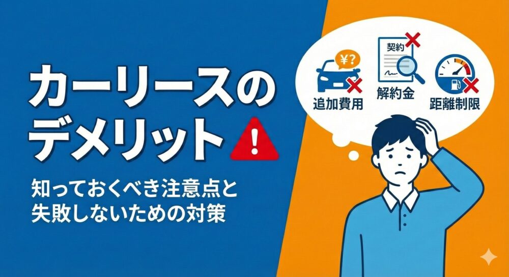 「車は綺麗だけど走りすぎた」というだけで、最後に数万円〜十数万円の出費が発生するのは痛手です。契約時には、自分のライフスタイルに合わせて余裕のある走行距離プランを選ぶか、あるいは「走行距離無制限」のオプションがあるリース会社(MOTAカーリース、ニコノリの一部プランなど)を選ぶことが、広義の意味での原状回復リスク対策となります。