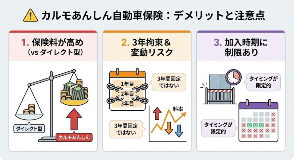 カルモあんしん自動車保険の「デメリット」と注意点