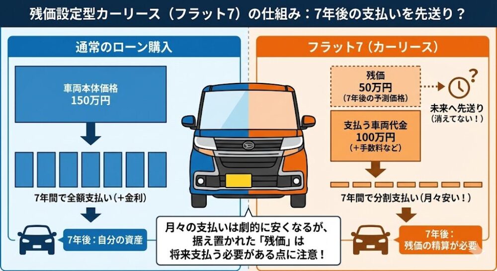 フラット7の計算には「7年後の残価(40〜50万円)」が含まれていません。