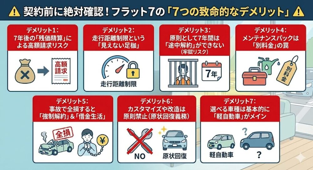 フラット7はやばい?7つのデメリットと7年後の残価精算リスクを徹底解説【2025年完全版】