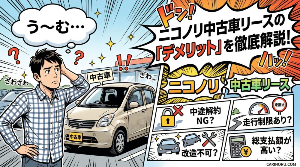 この残価設定があることで、契約終了時の車の状態や中古車市場の相場変動によっては、追加で費用を請求されるリスクが存在し、これが「最終的な支払い総額が高くなるかもしれない」という消費者の疑念を生んでいます。