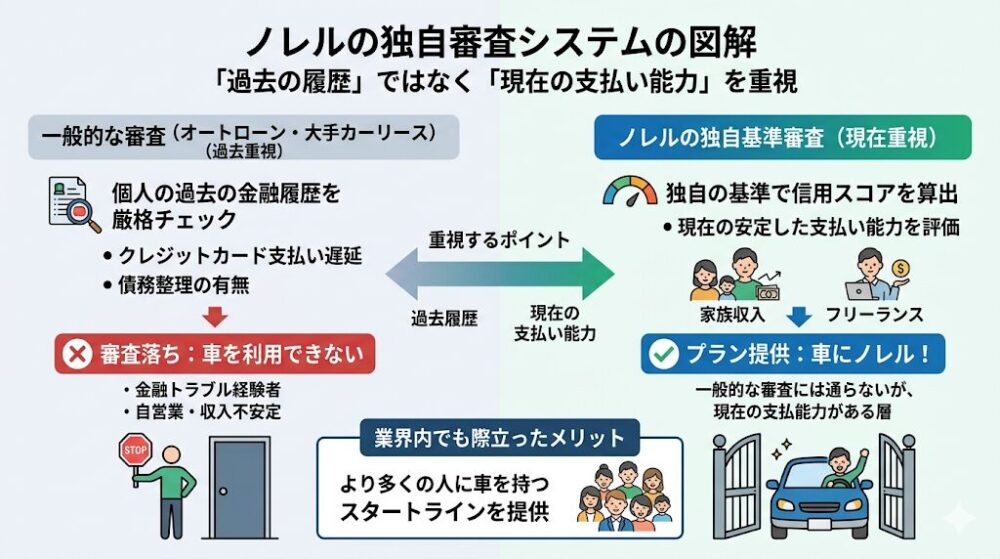 ノレルの最も大きな特徴であり、業界内でも際立ったメリットと言えるのが、独自の信用スコアを用いた審査システムの導入です。