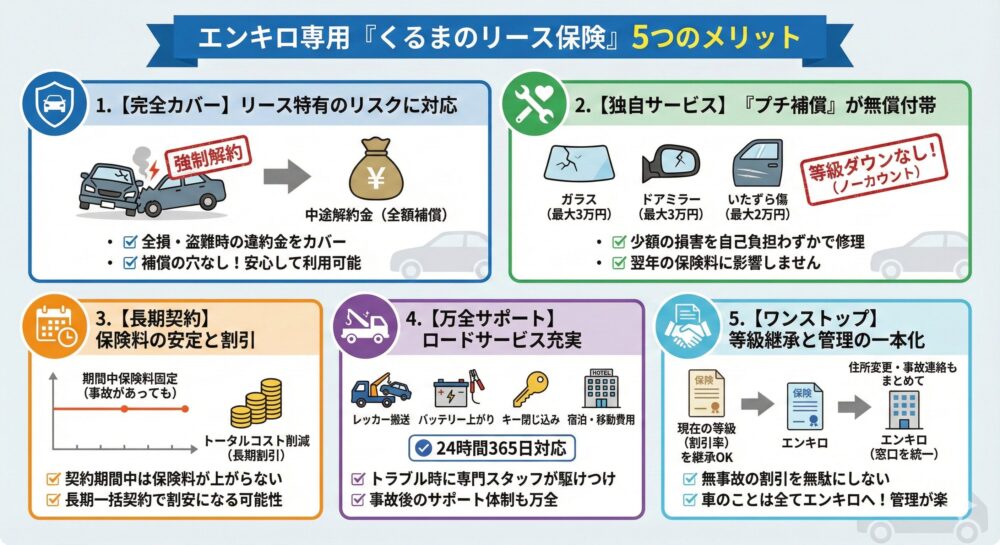 エンキロ専用「くるまのリース保険」における5つのメリット