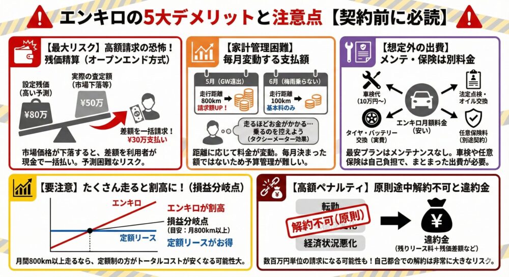 エンキロのデメリットを徹底解剖!距離連動型リースの注意点と向いてる人を完全解説