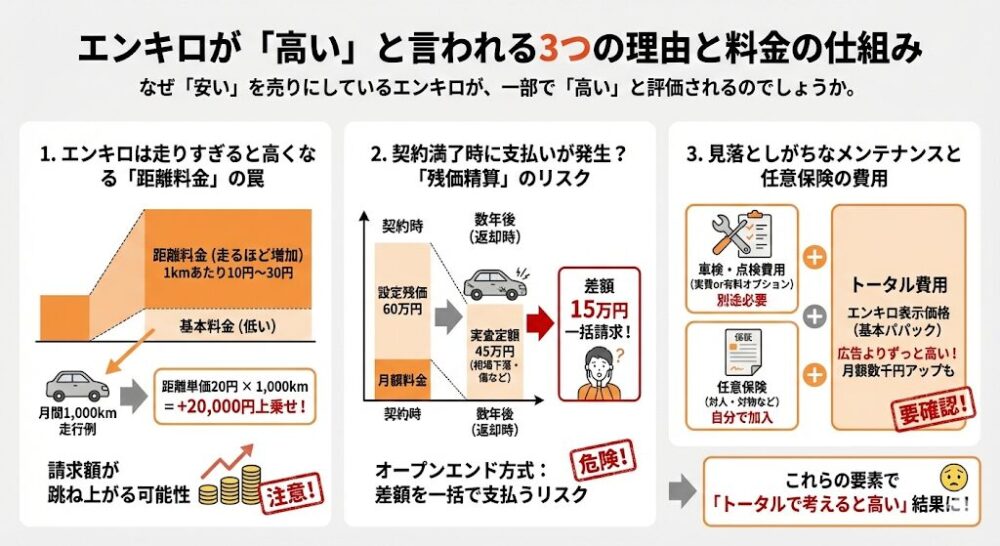 1.エンキロは走りすぎると高くなる「距離料金」の罠